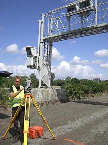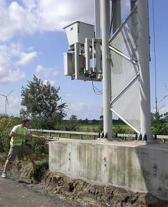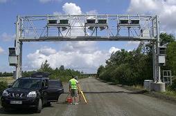 Einhaltung der Mautpflicht kontrolliert, ohne dabei den Verkehrsfluss zu stören. Sensoren auf der Kontrollbrücke ermitteln zuerst per Umriss-Scan jeden mautpflichtigen Lkw im passierenden Verkehr, eine Kamera nimmt dann mehrere digitale
