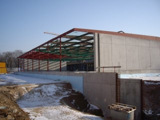 In der unmittelbaren Nachbarschaft der Neuen Messe Dresden entstand eine moderne Sportschule im Ostragehege. Auch eine Sporthalle wurde hier errichtet. Wir führten im Auftrage der Firma Dreßler Bau GmbH die Bauvermessung für dieses Projekt aus. Besonders für den Stahlbau waren genaue Vermessungen notwendig.